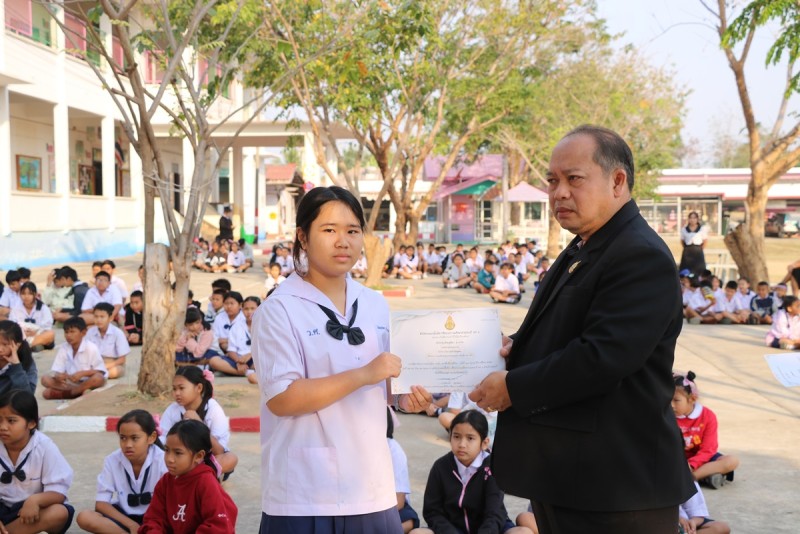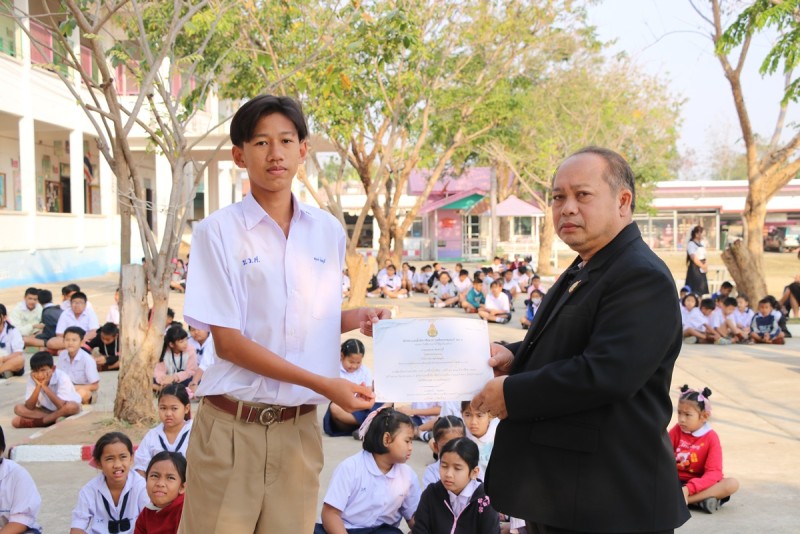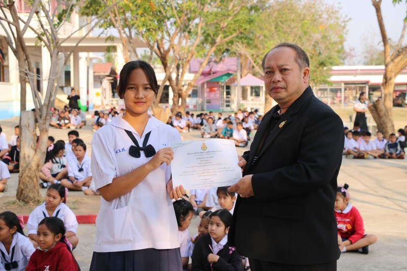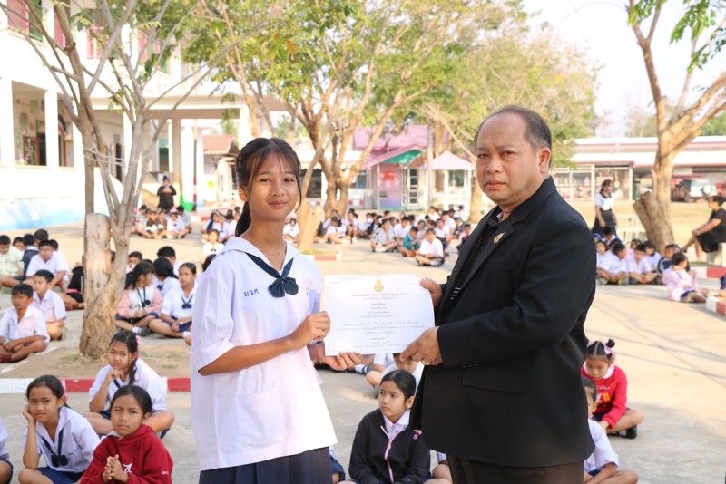 นายวุฒิพร ใจสงบ ผู้อำนวยการโรงเรียนมอบเกีบรติบัตรให้กับนักเรียนที่เข้าร่วมแข่งขันและได้รับรางวัลจากงานศิลปหัตกรรมนักเรียนครั้งที่ 73 ปีการศึกษา 2568 ขอชื่นชมในความสามารถ อดทน และฝึกซ้อม จนได้รับรางวัลในครั้งนี้ครับ |