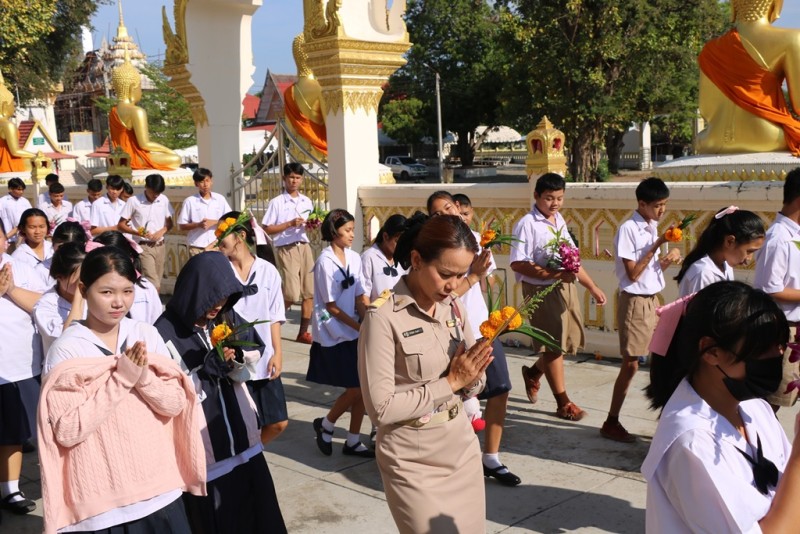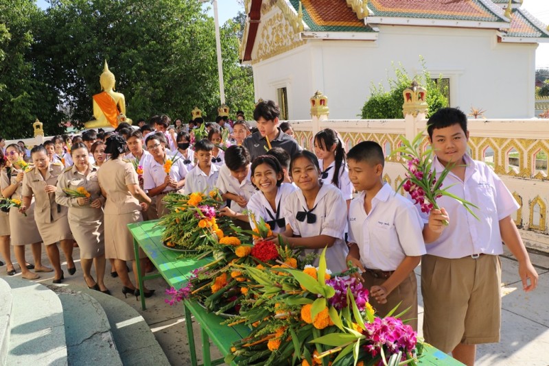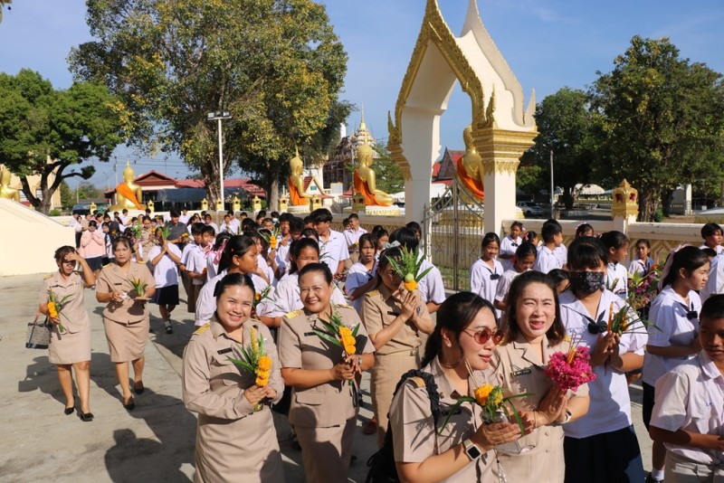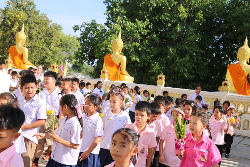 วันจันทร์ที่ 2 มีนาคม 2569 นายวุฒิพร ใจสงบ ผู้อำนวยการโรงเรียนฯ นำคณะครูและนักเรียนร่วมกันเวียนเทียนรอบพระอุโบสถวัดศรีอุปลาราม เนื่องในวันมาฆบูชา ในการนี้นักเรียนชั้นประถมศึกษาปีที่ 4 เป็นตัวแทนเข้ารับฟังการบรรยายธรรมจาก พระครูศรีกาญจนวัฒน (จารุธัมโม) เจ้าอาวาสวัดศรีอุปลารามด้วย |
