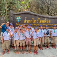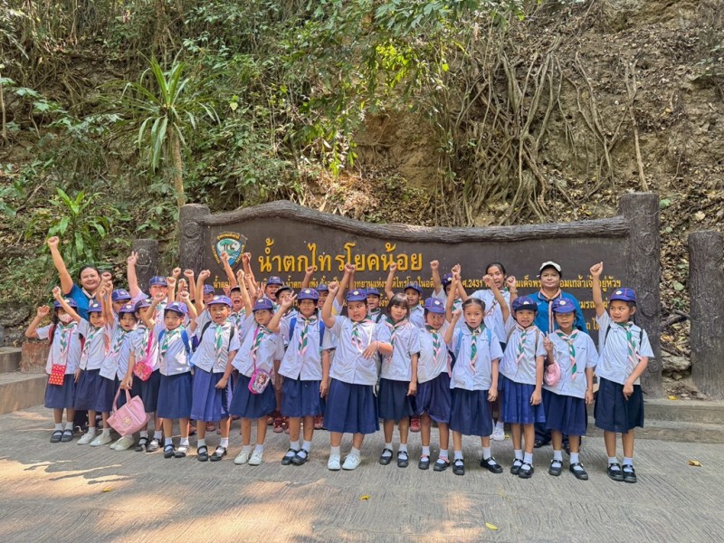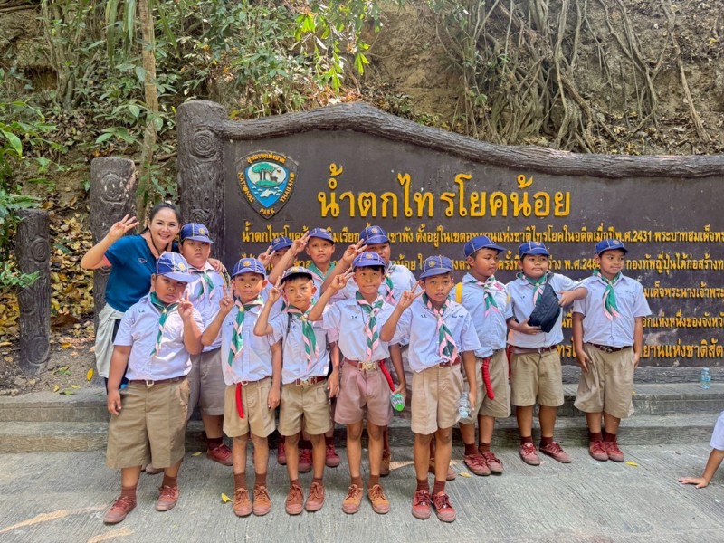 คณะครูและลูกเสือสำรองชั้นประถมศึกษาปีที่ 1-3 ทำกิจกรรม ณ น้ำตกไทรโยคน้อย